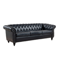 تشيسترفيلد كلاسيكي 3 مقاعد بو من الخلف مع أذرع ملفوفة لغرفة المعيشة أو المكتب باللون الأسود